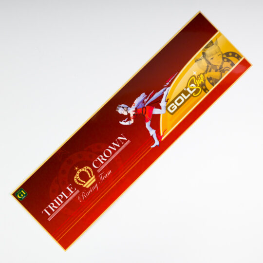 Laminated glossy vinyl outdoor rated decals 8.5 x 2.5″ in size unless stated otherwise