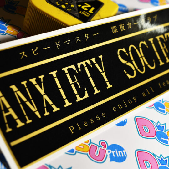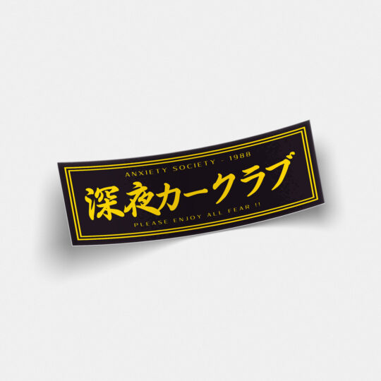 | Sticker | Anxiety Society Red, Anxiety Society Blue, Anxiety Society Split, Anxiety Society Gold, Anxiety Society Limited Gold Chrome, Anxiety Society Metallic Gold, Social Suicide, Downhill Masters, HVLC, Bad Mood Club, OSG, [coming soon] Kitsune x Desu Civic |